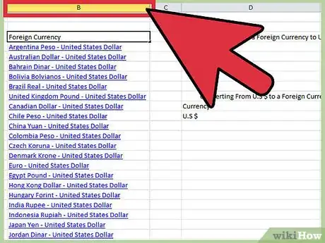 5Seleziona il foglio di lavoro iniziale e inserisci una colonna aggiuntiva tra i nomi delle valute e la calcolatrice. La calcolatrice si sposterà ora sulle colonne E & F.