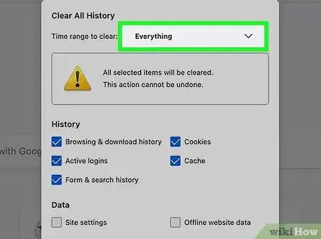 4Accedi al menu a discesa "Intervallo di tempo da cancellare". È posizionato nella parte superiore della finestra di pop-up "Cancella cronologia recente". Verrà visualizzato un elenco di opzioni: