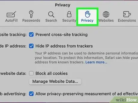 4Accedi alla scheda Privacy. È posta nella parte superiore destra della finestra "Preferenze".