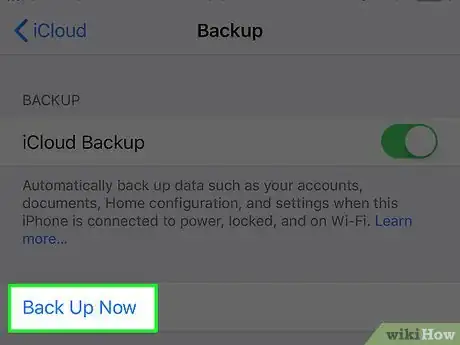 8Esegui il backup dei dati utilizzando iCloud. Per poter eseguire questo passaggio, molto probabilmente avrai la necessità di avere una quantità di spazio maggiore dei 5 GB gratuiti inclusi nell'account e dovrai essere connesso a una rete Wi-Fi (per poter effettuare la procedura in modo ottimale è bene che il dispositivo sia collegato anche alla rete elettrica). Per eseguire il backup su iCloud segui queste istruzioni: