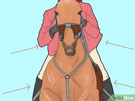 - Indossa sempre un casco da equitazione, un gilet adatto, guanti, stivali e gambali. Meglio andare sicuri piuttosto che pentirsene. Il gilet ti protegge le costole e gli organi interni dalla caduta, mentre i gambali ti evitano di scivolare dalla sella. Gli stivali con i lacci potrebbero far sì che il piede rimanga incastrato nelle staffe. I guanti evitano di farti perdere le redini.