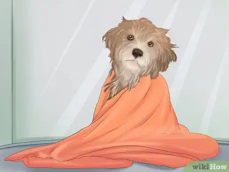 8Asciuga il cane. Tamponalo il più possibile con un asciugamano mentre è ancora nella vasca, in modo da non causare troppo disordine. Appoggia l'asciugamano sulla schiena del cane e permettigli di scrollarsi l'acqua di dosso. Molti cani imparano le "regole del bagnetto" e non si scrollano finché non avrai collocato l'asciugamano sul pelo per contenere gli schizzi. Se è a pelo corto o preferisci che si asciughi all'aria, hai finito.