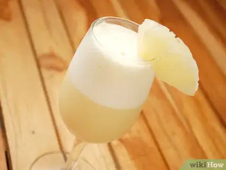 7Decorala. Decora il tuo drink con una fetta d'ananas appoggiata sul bordo del bicchiere. Se lo desideri, puoi aggiungere anche una ciliegia al maraschino. Goditi il tuo cocktail in una calda giornata estiva o in qualsiasi altro momento dell'anno.