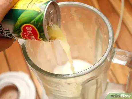 5Frulla gli ingredienti per amalgamarli. Usa una potenza media e assicurati di incorporare ogni ingrediente in modo uniforme. La tua piña colada dovrà essere semplice, dolce e cremosa.