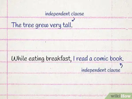 • "The tree grew very tall" ("L'albero è diventato molto alto") è una independent clause e costituisce una sentence completa.