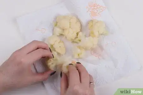 9Asciuga la verdura non appena è fredda. Quando è fredda al tatto, toglila dall’acqua ghiacciata e asciugala tamponandola con della carta da cucina. Un eccesso di acqua sulla superficie facilita il processo di marcescenza e formerebbe dei cristalli di ghiaccio sulla verdura una volta congelata. Questo passaggio è quindi molto importante se prevedi di conservare il cavolfiore a lungo termine.